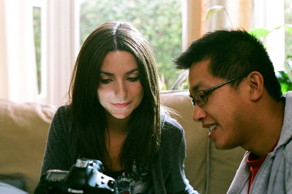 Actress Fiona Ryan with still photographer David Lau.