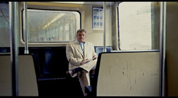 A man in a suit calmly tries to solve a crosswords puzzle while enjoying public transportation. He almost dozes of, when the next station is due.